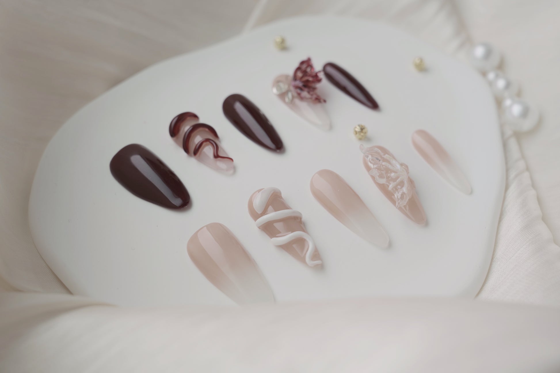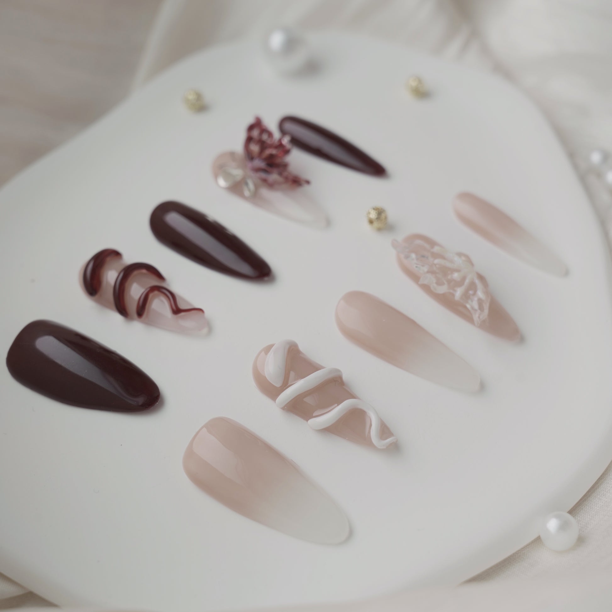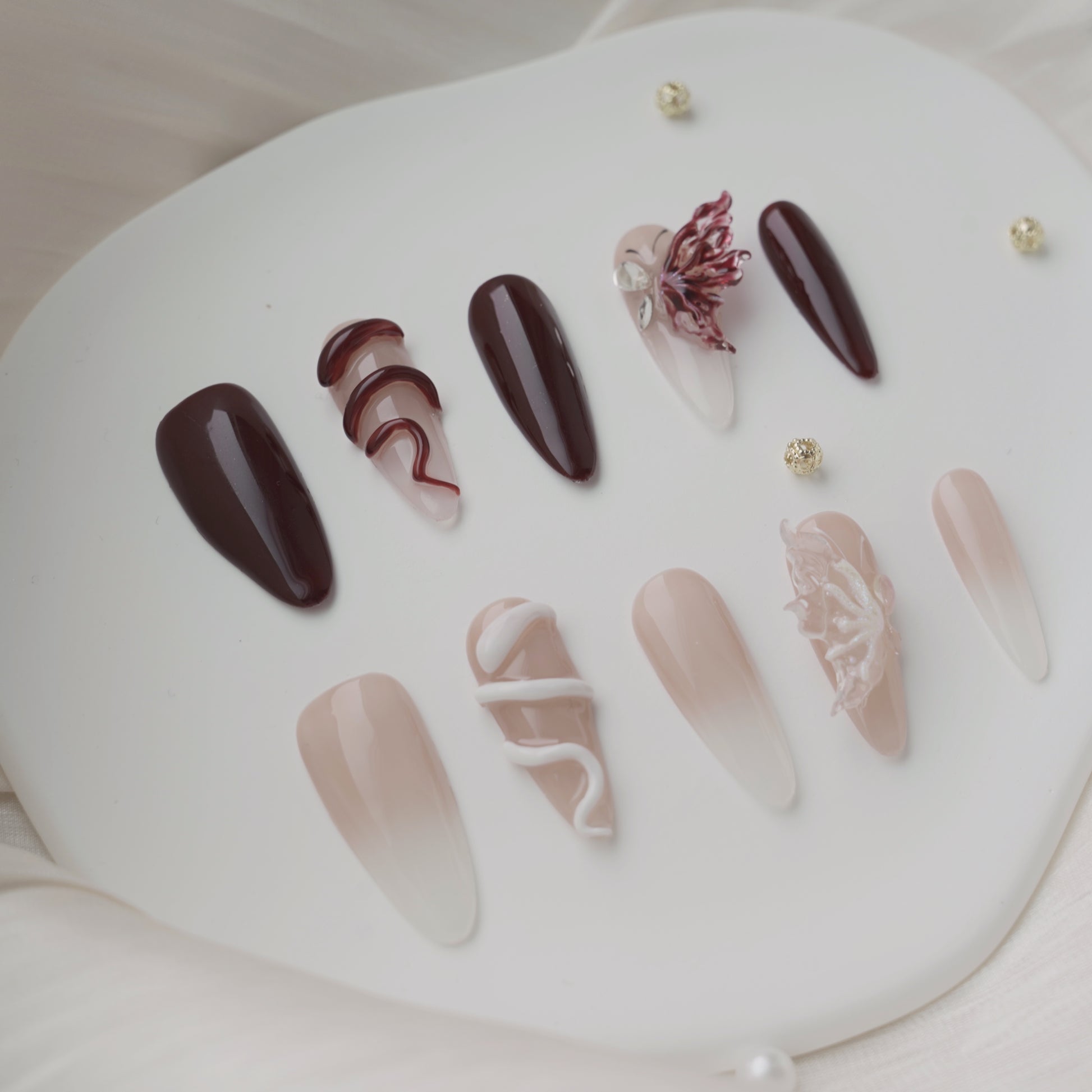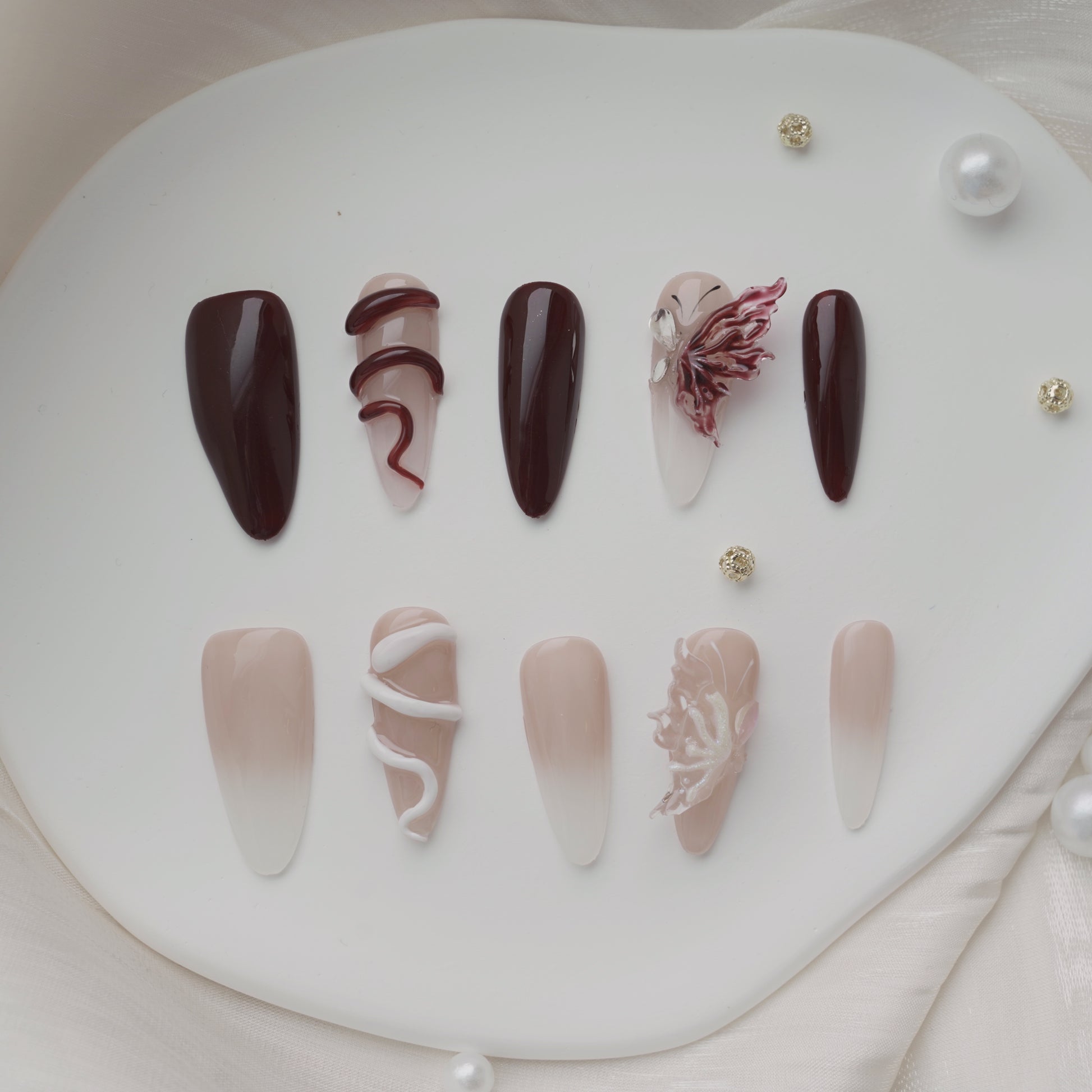 “Rosé Wings Press Ons – Bold red-pink butterfly nails”